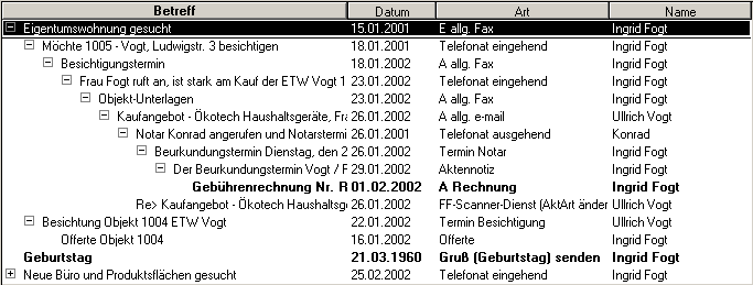 Jede einzelne Aktivität ist auch ein Vorgang. Egal, was Sie tun, ob Sie einen Brief, ein Fax oder eine E-Mail schreiben, einen Termin oder nur eine Aktennotiz eingeben, alles was mit einem Arbeitsablauf oder einer Tätigkeit zu tun hat, ist ein Vorgang. Auf diese Weise kann es zu einer beachtlich großen Ansammlung von Aktivitäten kommen. Um bei einem Sammelsurium von Arbeitsvorgängen den Überblick zu behalten, können Sie in FlowFact übergeordnete Aktivitäten definieren, die mit alle zusammenhängenden Vorgängen verknüpft wird. Diese Aktivität ist mit einem Ordner vergleichbar, in dem alle dazugehörigen Vorgänge abgeheftet sind.