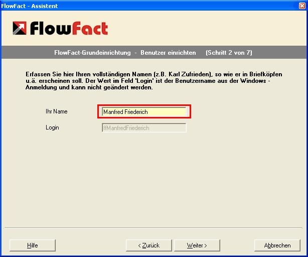 auch, um weitere FlowFact-Benutzer einzutragen. Die Anzahl möglicher Benutzer
