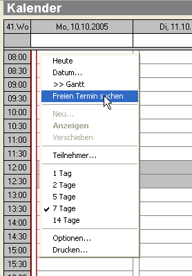 Maustaste innerhalb des Kalenders oder Gantt-Diagramms das Popup-Menü.
