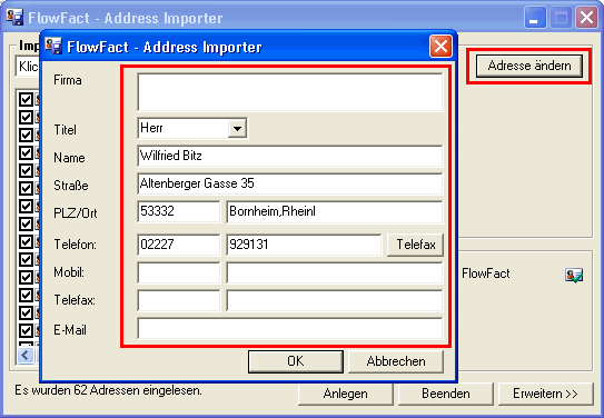 Adresse ändern, um im darauf folgenden Dialog evtl. Änderungen zu berücksichtigen: